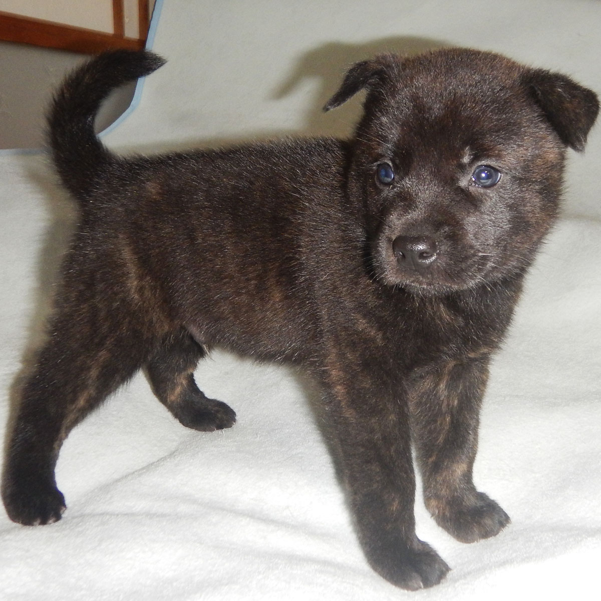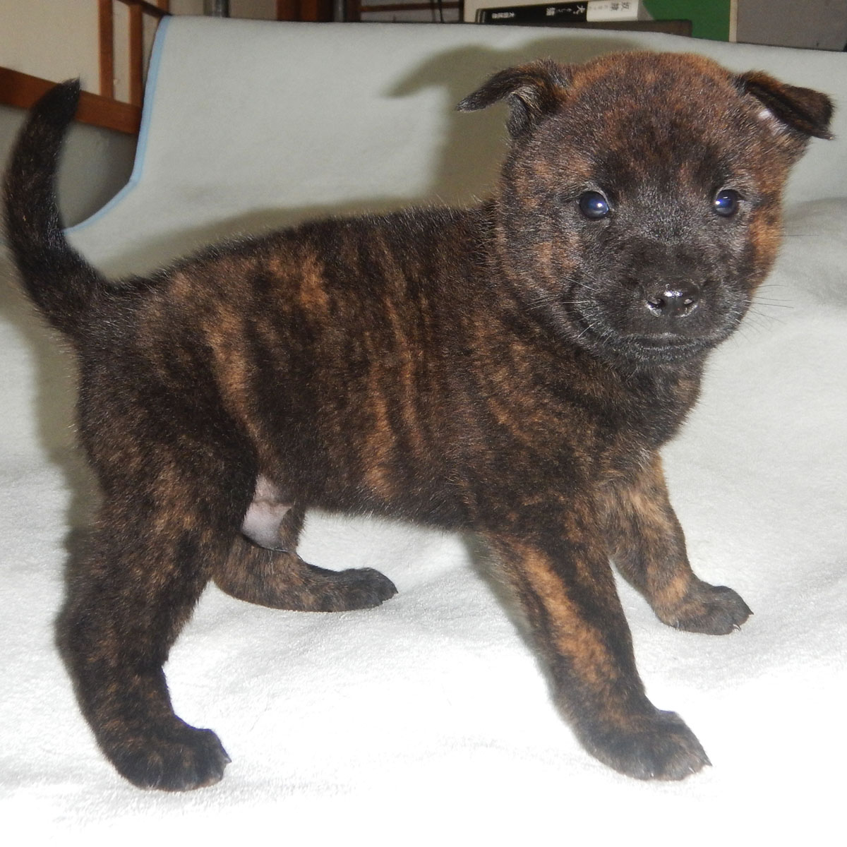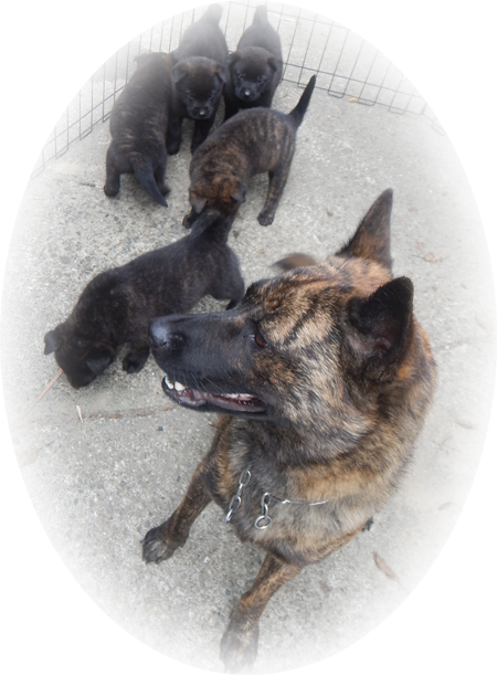 2022年9月9日、提携犬舎の西都の風(呼び名=ふう)が仔犬を出産しました。赤虎毛♂1頭、中虎毛♂2頭、♀1頭、黒虎毛♀1頭の計5頭です。毛色は成長と共に変化しますので、現在の所見からの予想です。血統登録は日本犬愛護会となります。風の先祖は代々優れた猟犬として使役され、風もその跡を継いでいます。交配相手は同じく猟犬として使役している紀ノ国暁(呼び名=げん)で、仔犬たちには遺伝的な障害も見られず極めて健康です。両親共に優秀な猟犬として、また父犬の近親には賞歴等が多数あり、甲斐犬本来の優れた資質を持つ優良な血統です。アウトブリーディングで生まれた仔犬たちです。