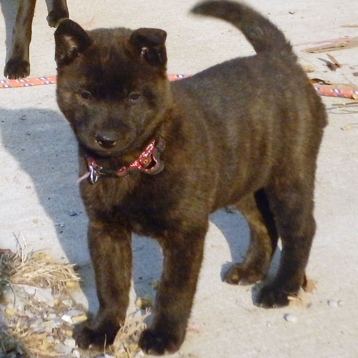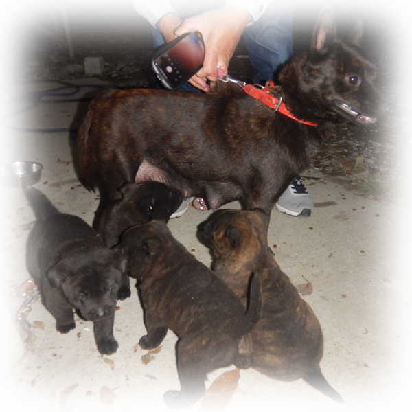 2022年10月17日に筑前国乃華{呼び名=華(はな)}が仔犬を出産しました。赤虎毛♀1頭、中虎毛♀3頭の計4頭です。毛色は成長と共に変化しますので、現在の所見からの予想です。血統登録は甲斐犬愛護会となります(日本犬愛護会等へ移籍可)。華は和歌山県の犬舎で生まれた犬です。交配相手の「筑前国乃陸{呼び名=陸(りく)}」は当犬舎で生まれた犬で、母犬は救助犬の「高竜乃朧月夜」、父犬は宮崎県えびの市で愛犬として飼われている「日向ノ赤虎」で、両親とも近親の賞歴等が多数あり、優良な血統で遺伝的な障害も見られず極めて健康です。ラインブリーディング(近交係数約0.6348%)で生まれた仔犬たちです。 |