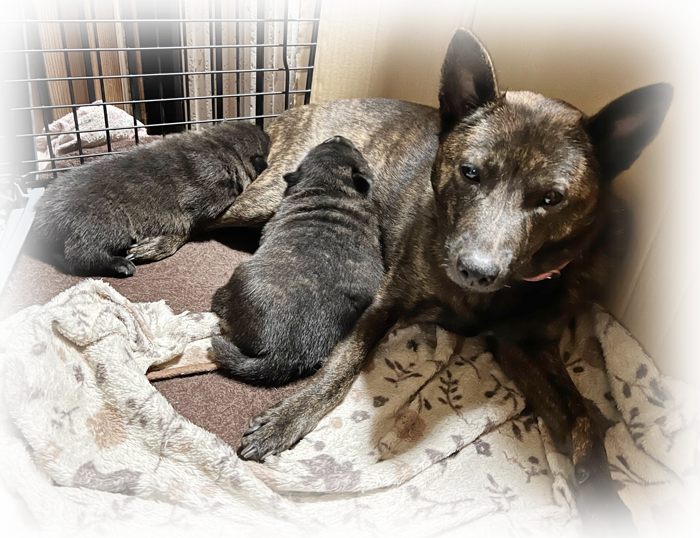 2023年11月28日、宮崎県宮崎市の提携犬舎で「文月(呼び名=ふづき)」が仔犬を出産しました。中虎毛♂2頭です。毛色は成長と共に変化しますので、現在の所見からの予想です。血統登録は甲斐犬愛護会となります。文月は比較的フレンドリーで、甲斐犬本来の優れた資質を持つ犬です。仔犬たちの父「筑前国乃仁」も甲斐犬本来の優れた資質を持つ犬で、文月と共に近親の賞歴等が多数あります。両親とも優良な血統で、遺伝的な障害も見られず極めて健康です。ラインブリーディング(近交係数約1.123%)で生まれた仔犬たちです。