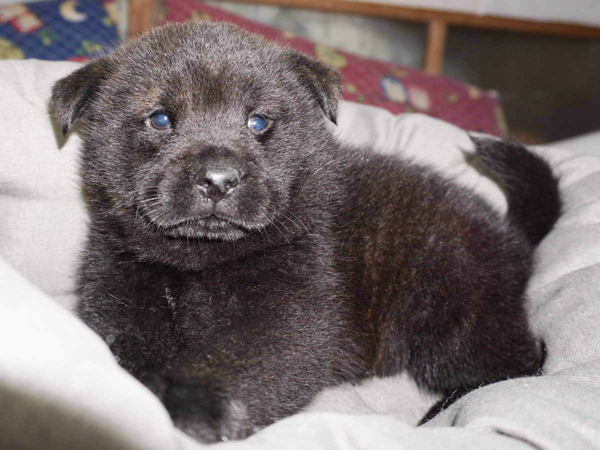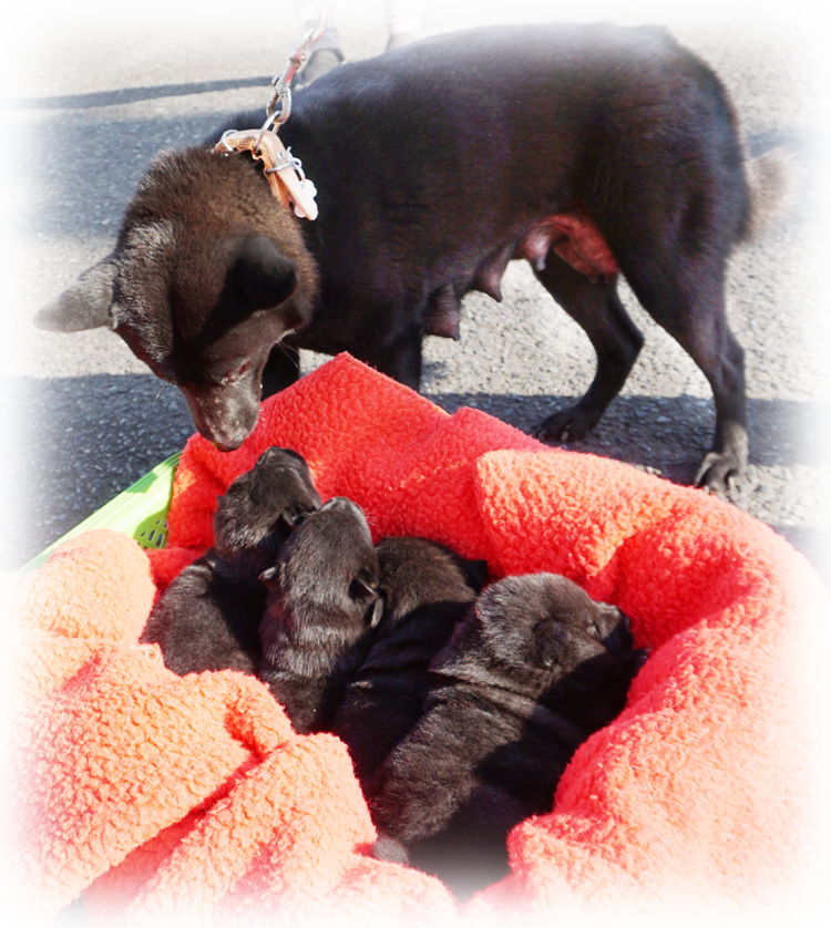 2024年3月7日に「島津月下美人(呼び名=かい)」が仔犬を出産しました。黒虎毛♂1頭、♀3頭の計4頭です。毛色は成長と共に変化しますので、現在の所見からの予想です。血統登録は甲斐犬愛護会となります。島津月下美人は和歌山県有田郡有田川町の生まれで、その父の父「彩の神」は愛護会第137回展総合優良犬優勝、母の父の父「黒龍神」は愛護会第153回展総合優良犬優勝、母の母の父「鉄海」は愛護会第140回展総合優良犬優勝、母の母の母「舞香」は愛護会第147回展壮犬牝の部1席、仔犬たちの父「筑前国乃仁」は当犬舎の生まれで、その母「祈磨」と父「美倶佐」は救助犬として訓練中、祈磨の母の母は東日本大震災による被災者捜索に出動した救助犬の「雲居の雁(2世)」、母の父「夕霧」も救助犬、美倶佐の母の父「国秀宝」は愛護会第146回展総合優良犬優勝、母の母「甲斐の虎姫」は愛護会第140回展総合優良犬準優勝他、両親とも近親の賞歴等が多数あり、甲斐犬本来の優れた資質を持つ優良な血統で、遺伝的な障害も見られず極めて健康です。ラインブリーディング(近交係数約1.6571%)で生まれた仔犬たちです。 |