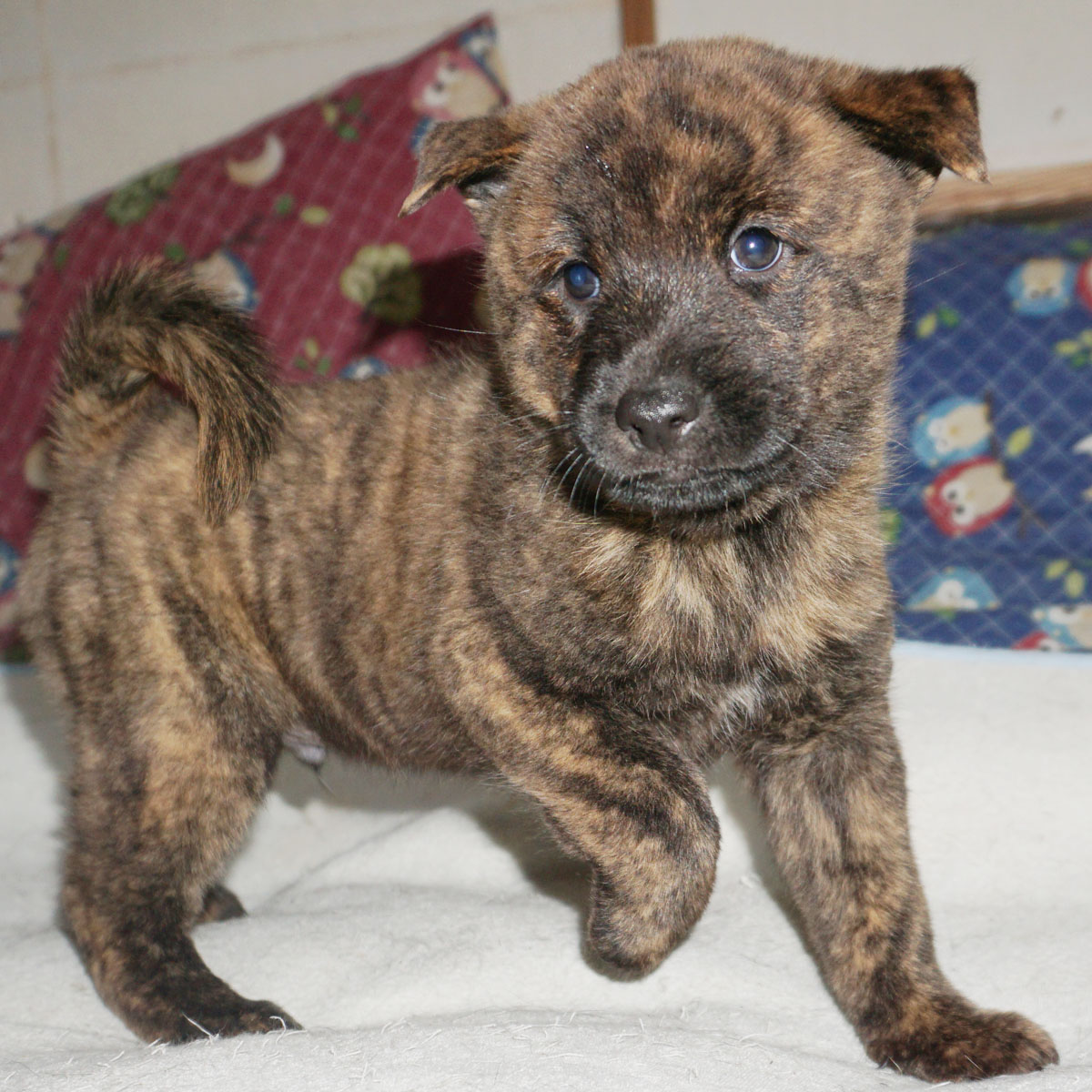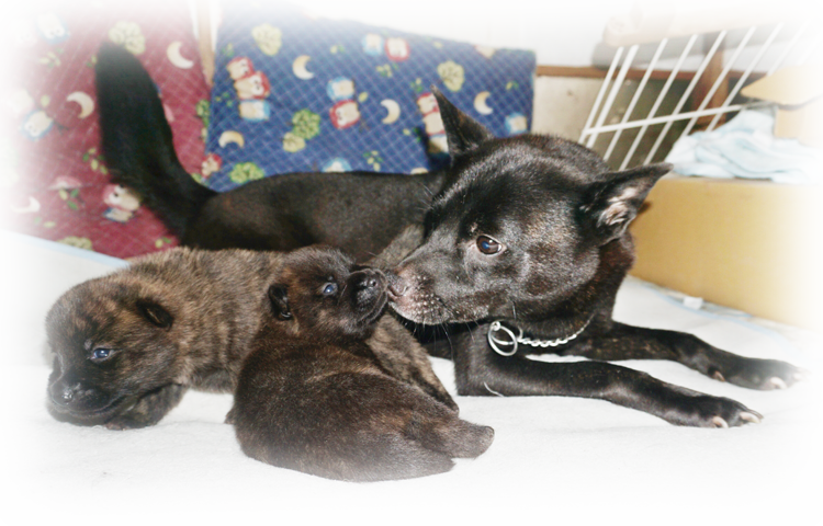 2024年10月11日、「祈磨(呼び名=Kiba)」が仔犬を出産しました。この日は国連が定めた国際ガールズ・デーです。仔犬は赤虎毛♂2頭です。毛色は成長と共に変化しますので、現在の所見からの予想です。血統登録は甲斐犬愛護会となります。祈磨は救助犬として訓練しており、その母の母「雲居の雁2世」も東日本大震災などに出動した救助犬、母の父「夕霧」も救助犬、母の父の父「神流の天真」は愛護会第127回展総合優良犬優勝、母の父の同胎「天久乃真姫」は愛護会第142回展総合優良犬準優勝、仔犬たちの父「美倶佐」も救助犬として訓練していて、その母の父「国秀宝」は愛護会第146回展総合優良犬優勝、母の母「甲斐の虎姫」は愛護会第140回展総合優良犬準優勝、異父兄「黒龍神」は愛護会第153回展総合優良犬優勝、母の異父弟「武神」は愛護会第155回展総合優良犬優勝、父の父の父「海」は愛護会第133回展総合優良犬優勝、父の母の母「讃岐ノ丸虎」は愛護会第146回展総合優良犬準優勝、母の父の母「東海ノ桔梗姫」は愛護会第134回展総合優良犬優勝他、両親とも近親の賞歴等が多数あり、甲斐犬本来の優れた資質を持つ優良な血統で、遺伝的な障害も見られず極めて健康です。アウトブリーディングに近いラインブリーディング(近交係数約0.5371%)で生まれた仔犬たちです。 |