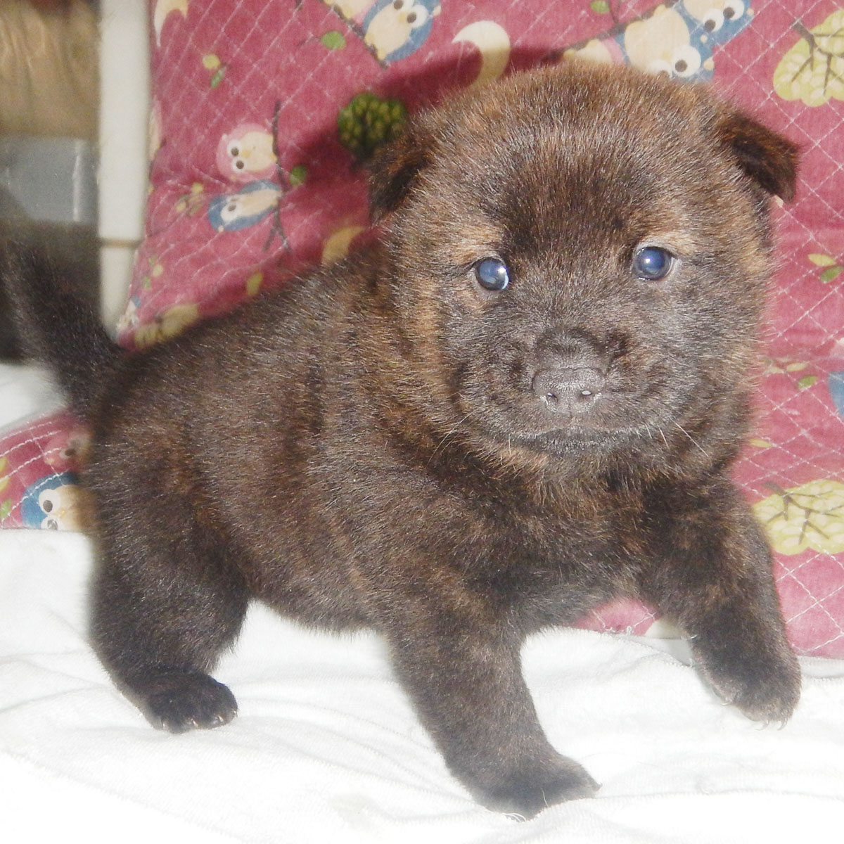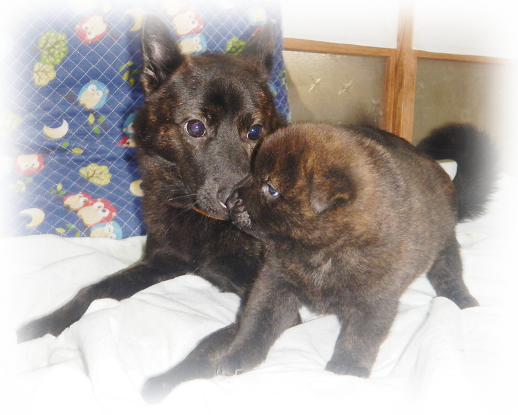 2024年12月29日に「燈廚(呼び名=Dom-Chu)」が仔犬を出産しました。赤虎毛♂1頭です。毛色は成長と共に変化しますので、現在の所見からの予想です。血統登録は甲斐犬愛護会となります。燈廚は福岡県糸島市の生まれで、その父の父「美倶佐」は救助犬として訓練中、母の母の父「鉄海」は愛護会第140回展総合優良犬優勝、母の母の母「舞香」は愛護会第147回展壮犬牝の部1席、母の父の父の父及び母の母の父の父「」は愛護会第133回展総合優良犬優勝、母の父の母の父「国王」は愛護会第125回展総合優良犬優勝、父の母の母の父「彩の神」は愛護会第137回展総合優良犬優勝、父の母の母の父の父「南陽の力皇」は愛護会第130回展総合優良犬優勝、仔犬たちの父「信玄」は鹿児島県曽於市の生まれで、その母の母「祈磨」は救助犬として訓練中、母の父の母「高竜乃朧月夜」、母の父の父「夕霧」も救助犬、母の母の母の母「雲居の雁(2世)」は東日本大震災による被災者捜索に出動した救助犬、その息子「玄(Nuuk)」は日本から初めてフィンランドに行った甲斐犬でフィンランド、デンマーク、ドイツ、エストニア等のドッグショーでチャンピオン歴多数、父の母の父「黒龍神」は愛護会第153回展総合優良犬優勝、父の父の母「甲斐の虎姫」は愛護会第140回展総合優良犬準優勝他、両親とも近親の賞歴等が多数あり、甲斐犬本来の優れた資質を持つ優良な血統です。ラインブリーディング(近交係数約1.4282%)で生まれた仔犬です。