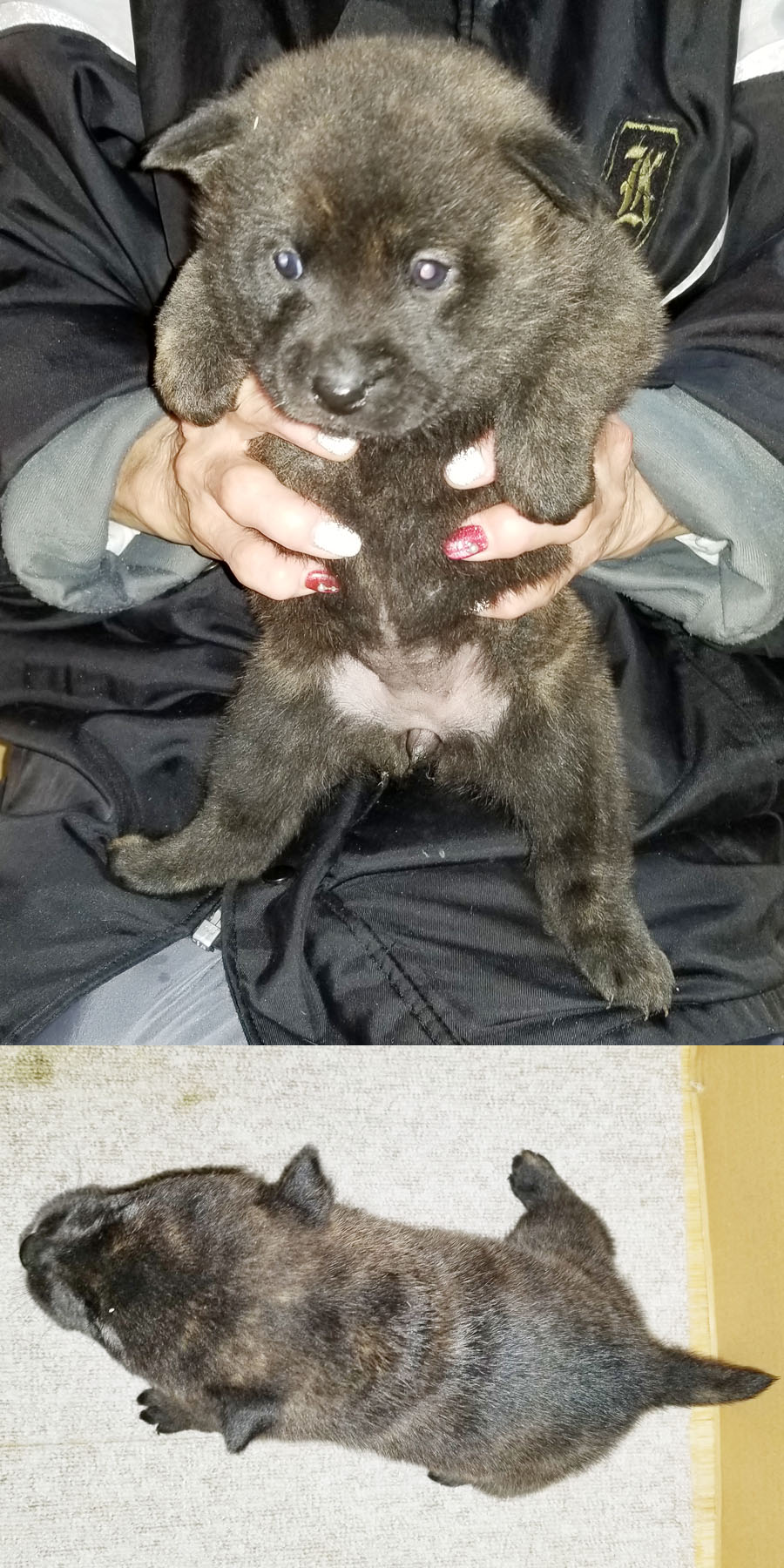 2025年11月13日、「紀ノ国和香{呼び名=和香(わか)}」が仔犬を出産しました。黒虎毛♂1頭、♀1頭、赤虎毛♀1頭の計3頭です。毛色は成長と共に変化しますので、現在の所見からの予想です。血統登録は甲斐犬愛護会となります。紀ノ国和香は兵庫県高砂市の生まれで、その父「鉄海」は愛護会第140回展総合優良犬優勝、母「舞香」は愛護会第147回展壮犬牝の部1席、父の父「」は愛護会第133回展総合優良犬優勝、母の父「鉄親」は愛護会第142回展未成犬牡の部1席、母の母の母「御嵩乃多花」は愛護会第129回展総合優良犬優勝、仔犬たちの父「紀ノ国武志」は当犬舎の生まれで愛護会第154回展未成犬牡の部2席、その父の母「高竜乃朧月夜」は救助犬、父の父「夕霧」も救助犬、父の父の父「神流の天真」は愛護会第127回展総合優良犬優勝、父の父の同胎「天久乃真姫」は愛護会第142回展総合優良犬準優勝、父の父の同胎の息「天久乃明真」は愛護会第145回展総合優良犬優勝、父の父の異母妹「神流の紗莉」は愛護会第143回展総合優良犬準優勝、父の父の父の姉「川崎ノ凛虎」は愛護会第126回展総合優良犬準優勝他、両親とも近親の賞歴等多数あり、甲斐犬本来の優れた資質を持つ優良な血統で、遺伝的な障害も見られず極めて健康です。ラインブリーディング(近交係数約0.1526%)で生まれた仔犬たちです。