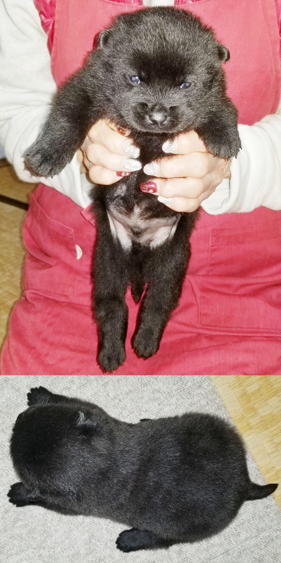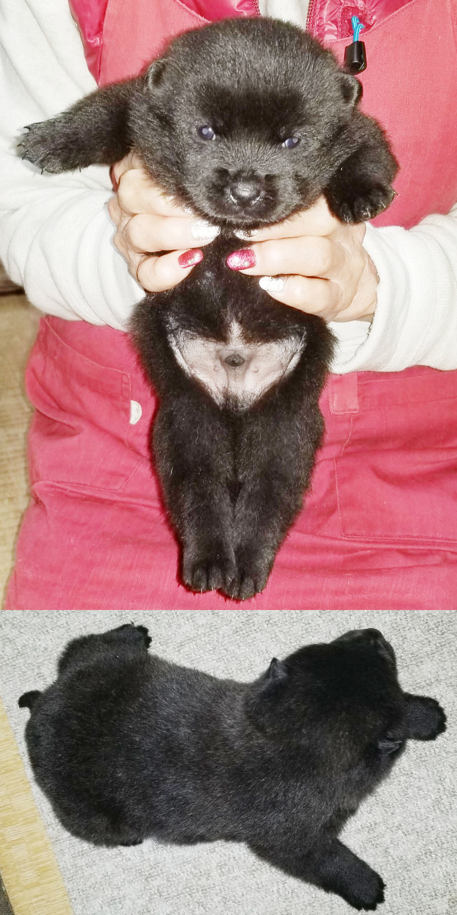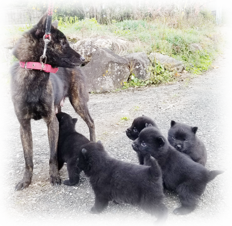 2025年11月29日、「紀ノ国斐武(きのくにいぶ)(呼び名=いぶ)」が仔犬を出産しました。黒虎毛♂3頭、♀2頭です。毛色は成長と共に変化しますので、現在の所見からの予想です。血統登録は甲斐犬愛護会となります。紀ノ国斐武は和歌山県有田郡有田川町の生まれで、その母の母「播磨の琴姫」は愛護会136回展成犬牝の部2席、母の父「千太狼」は愛護会第145回展未成犬牡の部3席、母の父「彩の神」は愛護会第137回展総合優良犬優勝、母の父の父「」は愛護会第141回展成犬牡の部2席、母の母の母の父「若本陣」は愛護会第123回展壮犬牡の部4席、母の母の父の母「彩華姫」は愛護会第127回展未成犬牝の部2席、母の母の父の父「南陽の力皇」は愛護会第130回展総合優良犬優勝、母の父の父の父「」は愛護会第133回展総合優良犬優勝、仔犬たちの父「紀ノ国空海」は和歌山県有田郡有田川町の生まれで、その母の母「舞香」は愛護会第147回展壮犬牝の部1席、母の父「鉄海」は愛護会第140回展総合優良犬優勝、母の母の父「鉄親」は愛護会第142回展未成犬牡の部1席、父の母の父「国王」は愛護会第125回展総合優良犬優勝他、両親とも近親の賞歴等が多数あり、甲斐犬本来の優れた資質を持つ優良な血統で、遺伝的な障害も見られず極めて健康です。ラインブリーディング(近交係数約1.465%)で生まれた仔犬たちです。