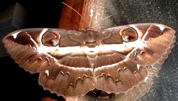 開張100mm程の大型のトモエガで、外縁が波状をしていて白色の横線がある。夜、電灯に集まる。幼虫の食草はユリ科のサルトリイバラ、シオデなど。幼虫の出現は5〜9月にわたり、発生回数は年2回以上。老熟した幼虫は粗繭を綴って蛹化する。蛹は黒褐色。