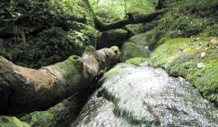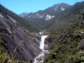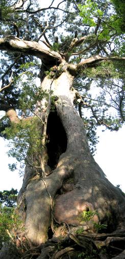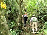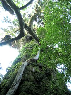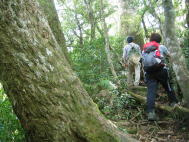 千尋滝展望所(標高270m)からモッチョム岳(標高944m)までの片道3.5km、往復7kmの軽登山コースです。万代杉、モッチョム太郎など屋久杉の巨木の他、屋久島では珍しいアカマツも見られます。この標高でヤクザサ(ヤクシマダケ)が生えているのも珍しいです。晴れていれば山頂から眼下に、原、尾之間の集落や太平洋を見下ろすことができ、絶景です。
