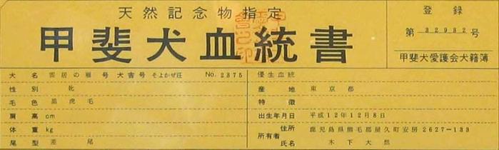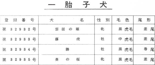 裏面には一胎子犬(兄弟姉妹犬)を記載