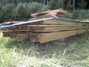 製材所から中が空洞の大きな屋久島産のツガの材を安く分けてもらいました。製材して大工さんの作業場で冬まで乾燥させます。これは階段、いろりの縁等に使う予定です。