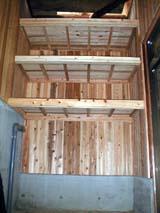 二階に蒲団部屋を、玄関に棚を作りました。