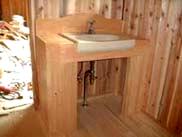 洗面台を島内産檜で作り、陶器製の洗面器を設置しました。