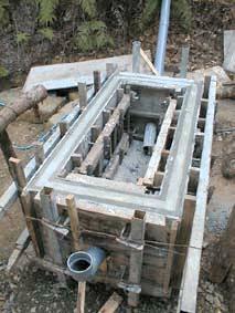 投入槽と排出槽の蓋のコンクリートを打ちました。排出槽は2つに分れているので、それぞれにマンホールを造りました。