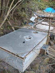 醗酵槽に溜った雨水を抜き、中を掃除して一部モルタルで補修しました。