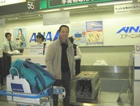 →羽田空港でやっと荷物室から解放された。次の飛行機まで2時間以上の時間があったので、空港敷地内で散歩をしたり、簡単な服従訓練をした。