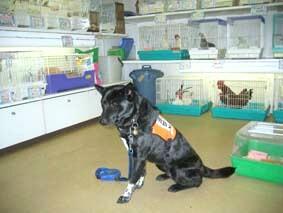 ←広島県東広島市のペットショップで他の動物に馴致させる訓練。