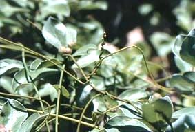 つる性でグンバイヒルガオなどに半寄生して地面を這って生育する。