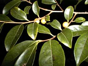 トキワガキ <常盤柿> Diospyros morrisiana [カキノキ科カキノキ属] 分布:本州(伊豆半島以西)、四国、九州、沖縄、中国、台湾 開花期:6月 用途:庭木 常緑小高木。高さ8〜9mになる。樹皮は黒色。葉は長さ5〜12cmの長楕円形で先端は尖る。革質で両面とも無毛。葉腋に淡黄色の花を下向きに付ける。花冠は長さ約8mmの鐘形で先は4裂する。雌雄異株。雄花は2〜3個集まって付き、雌花は単生する。果実は直径1.5〜2cmの球形で黄色から暗褐色に熟す。 |