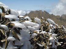 南国の「屋久島」にも雪が積ります。標高1300mを越す高塚小屋周辺ではこの通り、ヒメシャラも雪化粧をしています。 |