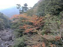 山の方はだいぶ秋も深まり、ヤクシマオナガカエデ、コハウチワカエデ(イタヤメイゲツ)、ヤマザクラ、ナナカマド、マルバヤマシグレ、アオツリバナなどが美しく紅葉しています。常緑の照葉樹や針葉樹の中で、深紅から淡紅色まで、紅葉した落葉樹は一際目立ちます。 |