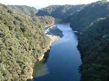松峯大橋は、安房川の河口から2kmほどのところに架かっている屋久島で一番高い橋で、水面から約70mもあります。上流は急峻で滝がいくつもある安房川も、河口付近ではゆったりとした静かな流れになります。周りは豊かな照葉樹林に囲まれ、カヌーなどで景色をゆっくり楽しみながら遊ぶには最高の場所です。スノーケリングをすれば、ウグイ、アユ、ヨシノボリ、ボウズハゼ、オオウナギ、クサフグ、ボラの子、エバ(ギンガメアジの子)など、汽水域の魚もいろいろ見られます。 |